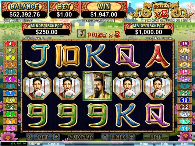 Lucky 8 has 5 reels and 25 pay-lines and can be played from as little as 0.01 coins. It takes slot fans on an adventure to ancient China and gives them the opportunity to rise up their riches on their way. The slot comes with wild substitutions, scatter wins, 8 free spins with up to 8x multiplier, two jackpots and a Win Win feature.